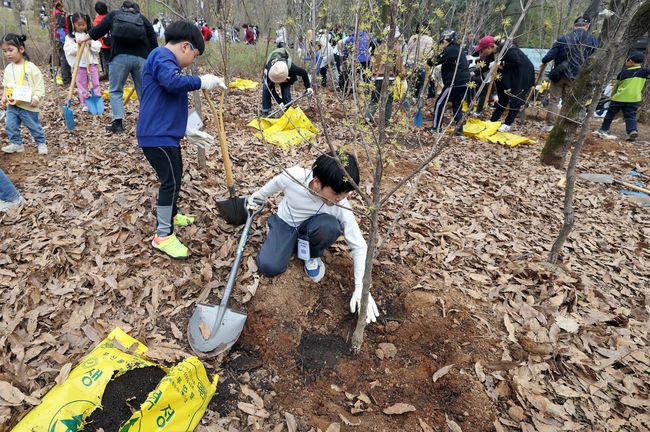 식목일 `나무심기행사`에 참여한 아이들.