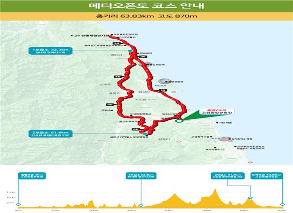 이번 대회에는 전국에서 총 1,011명의 자전거 동호인이 참가하며, 고성종합운동장을 출발해 통일전망대, 디엠지(DMZ)박물관, 건봉사, 백두대간생태전시관, 송지호전망타워를 잇는 93km 그란폰도 코스와 63.83km 메디오폰도 코스 두 종목으로 진행된다.