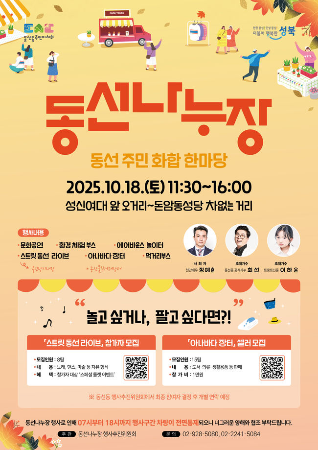 성북구, ‘차 없는 거리 동선나누장’ 18일 개최… 도심 속 마을축제로 주민 화합