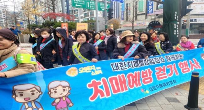 대한치매예방협회 회원들이 걷기 운동을 통한 치매예방 캠페인을 하고있다.(제공 치매협회)