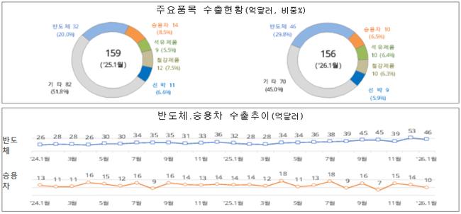 • 1~10일 수출 156억 달러, 전년 대비 2.3% 감소